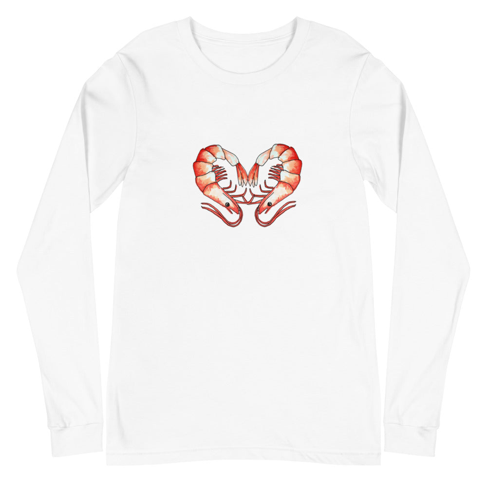 Designed and illustrated by me, this long sleeve tee features an illustration of shrimp shaped in a heart. This cute and unique tee illustration was inspired by Valentine's day. Perfect for lounging or going out and about.