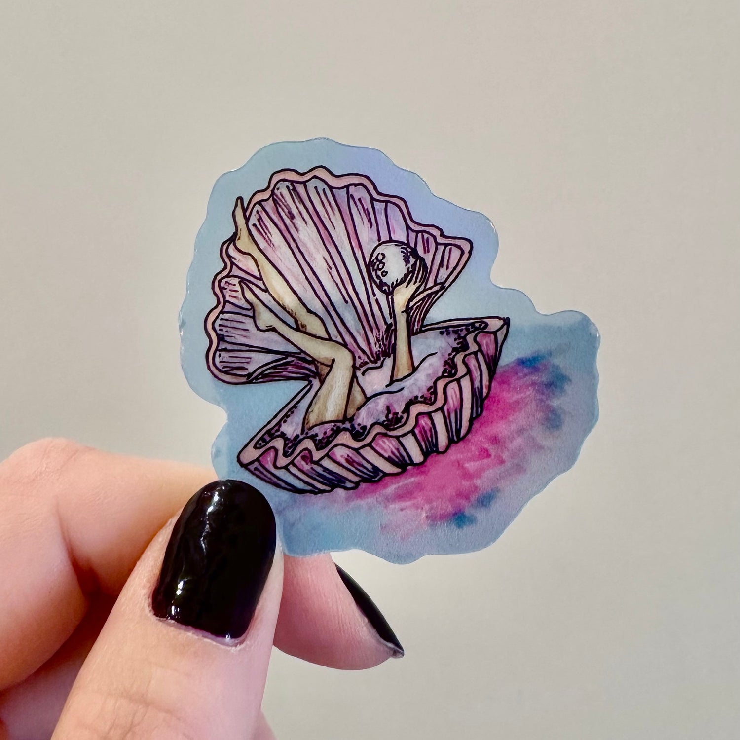 Add a touch of whimsy to your belongings with this adorable 1.5"x1.5" sticker featuring a cute pink and blue oyster and pearl. Designed and illustrated by me, this sticker is a perfect mix of fun and charm. The prismatic effect makes the design pop with colorful reflections, making it a truly unique addition to your collection.