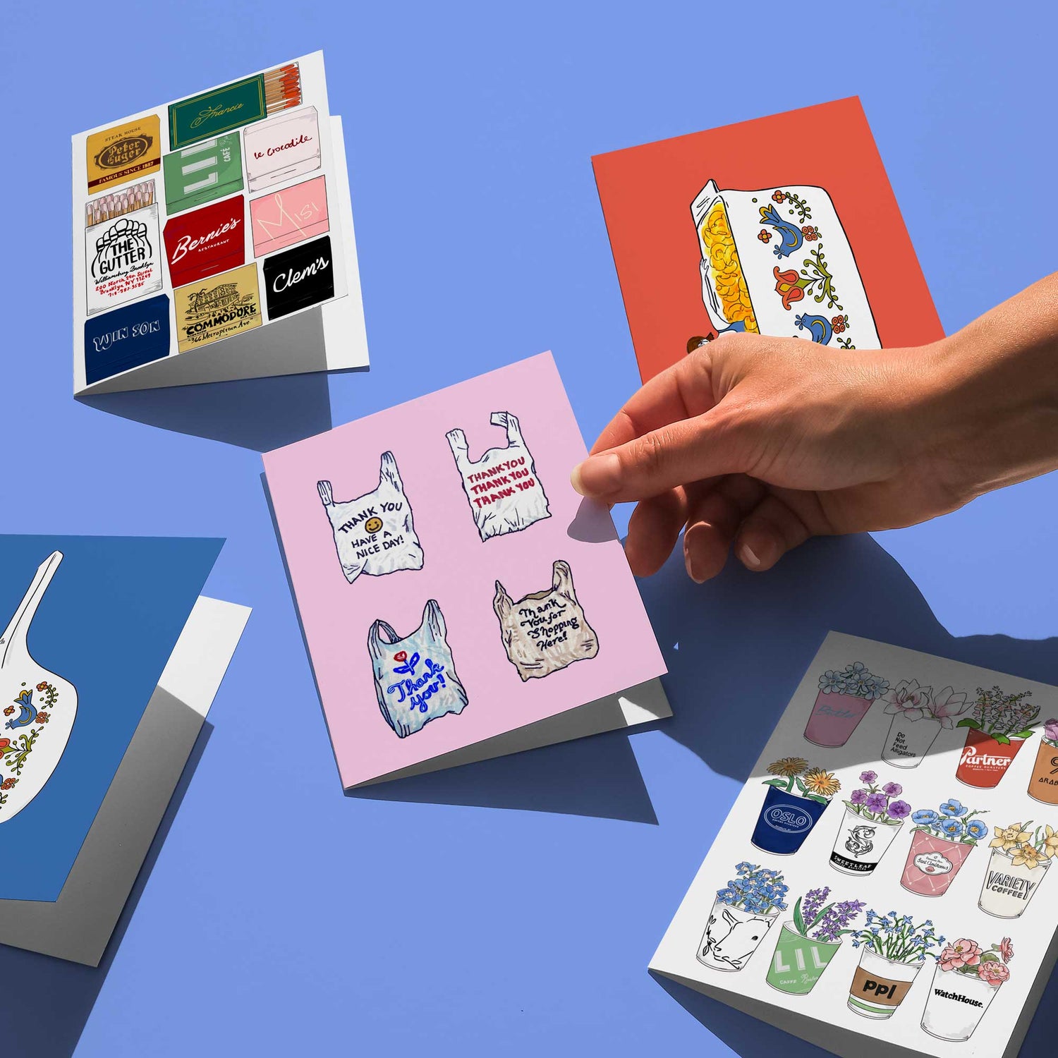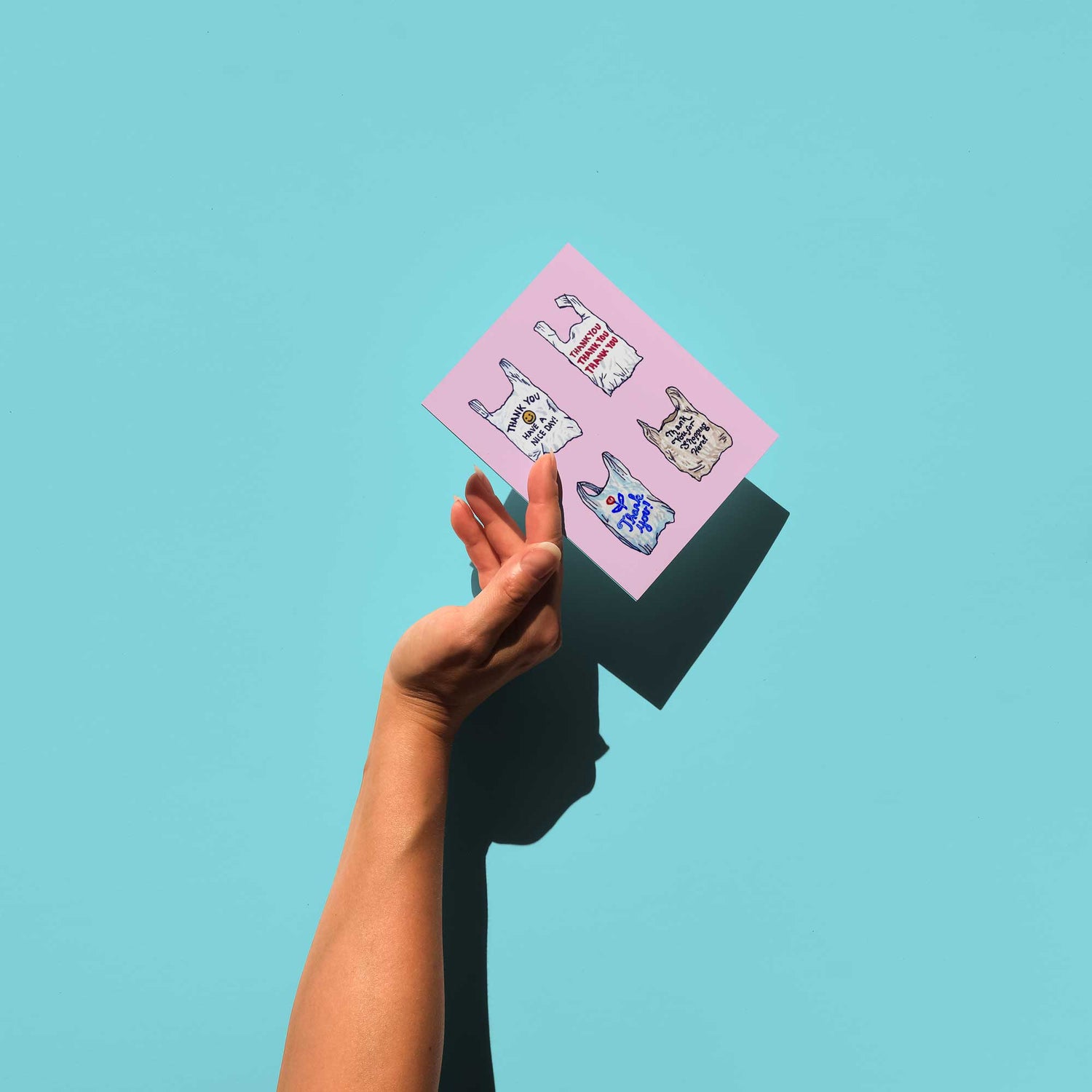Thank You Card – Illustrated Shopping Tote Design – Blank Inside – Appreciation Card with Envelope